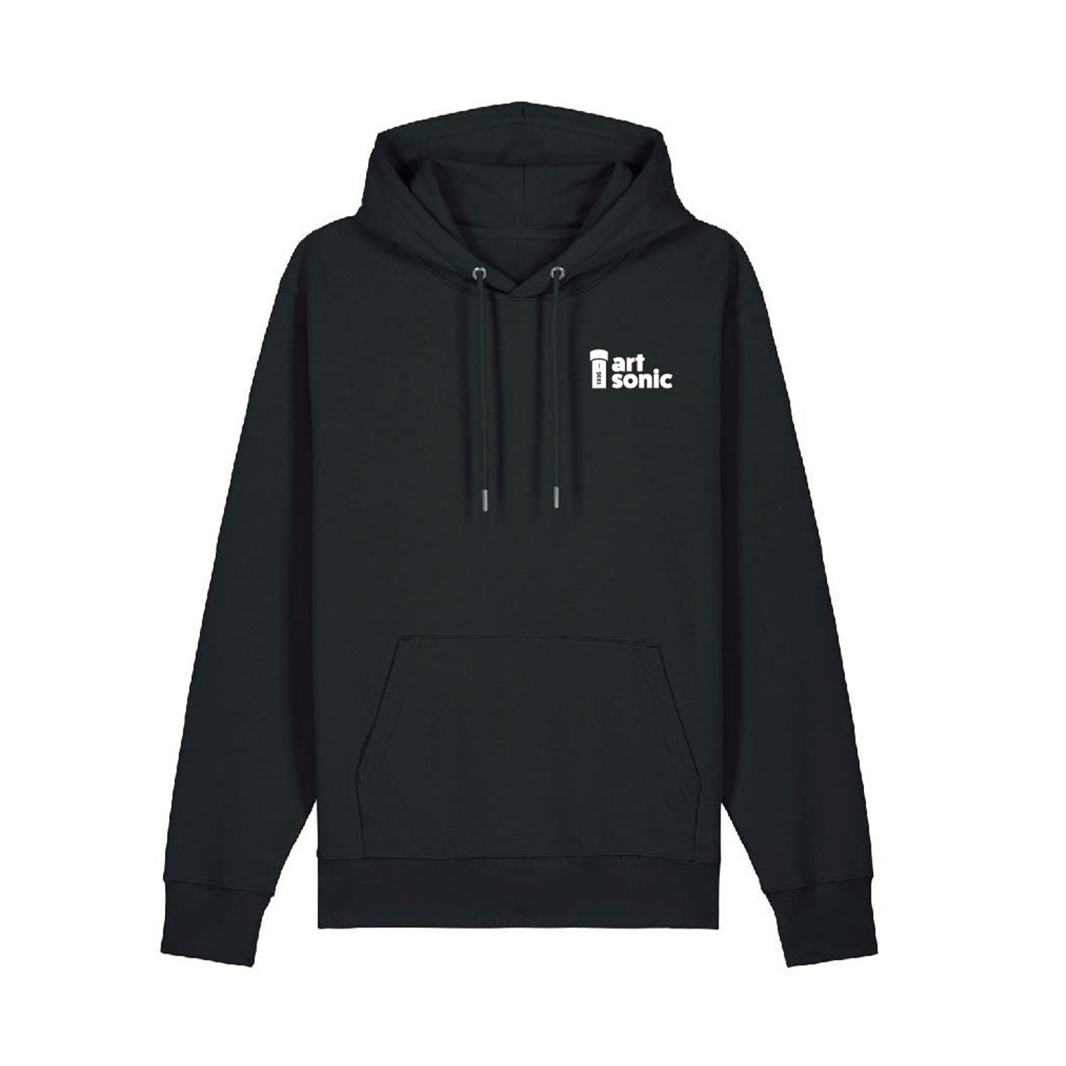 Sweat à capuche unisexe noir, broderie Art Sonic blanche